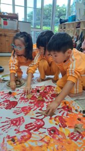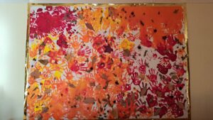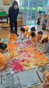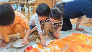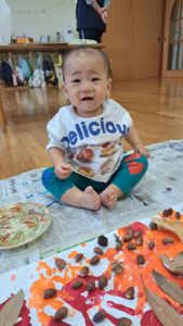 後日、木の実や落ち葉をペタペタ貼りました🍂