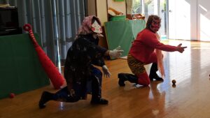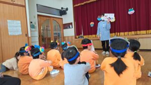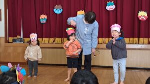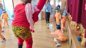 絵本に出てきたいろいろな鬼にボールを投げていると…