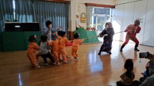 綱引きが楽しかったようで、鬼が帰ってからもお友達と勝負して大はしゃぎ🙌