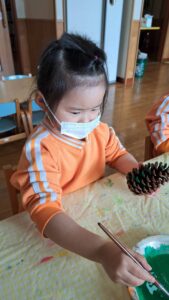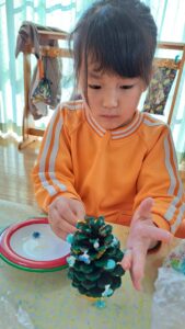 大きくて立派な松ぼっくりを頂いたので、ツリー作りに挑戦👍
