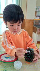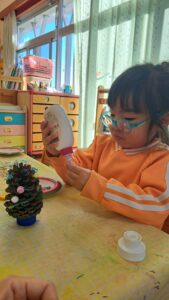 好きな飾りをボンドでペタペタ😁