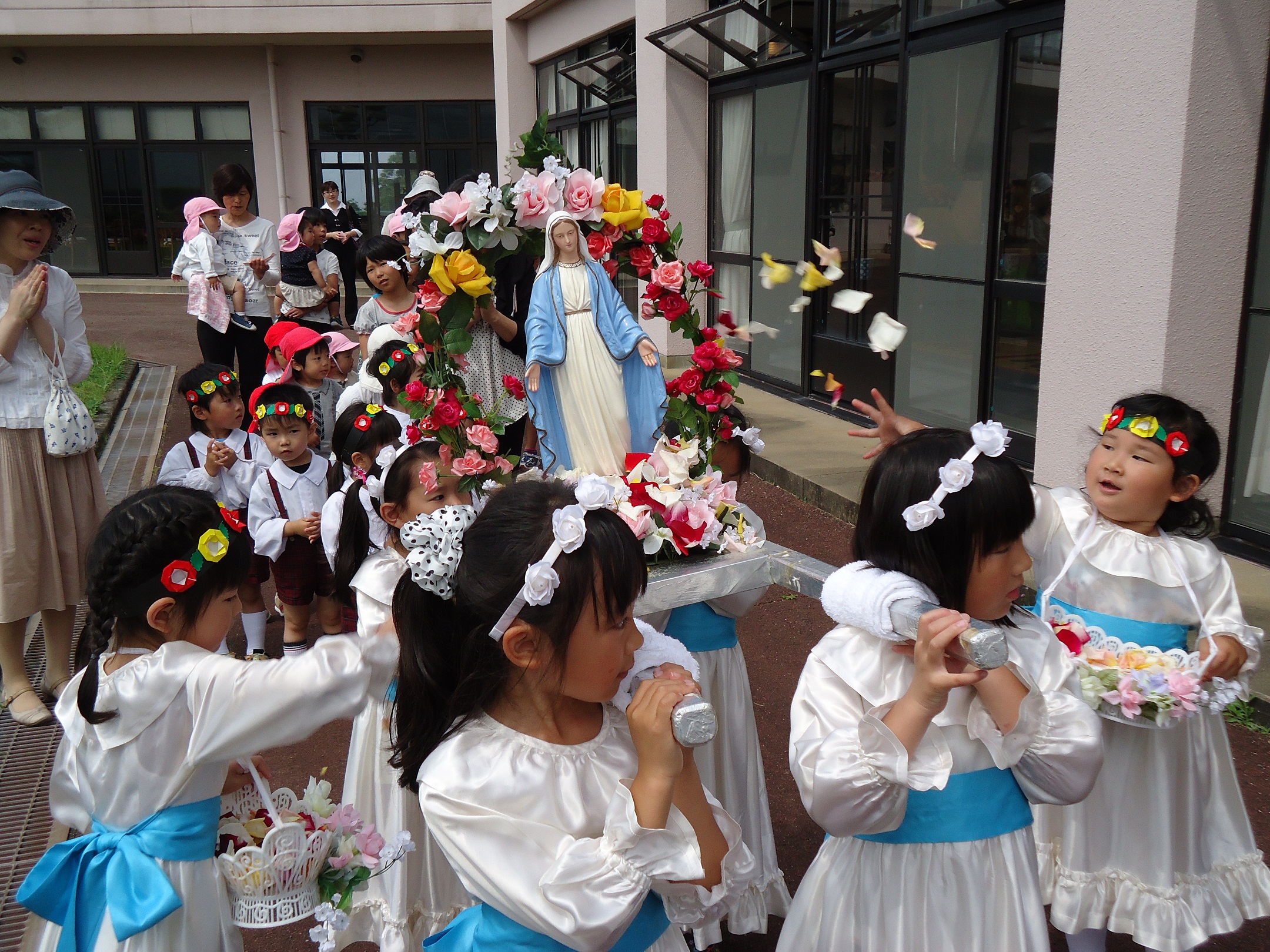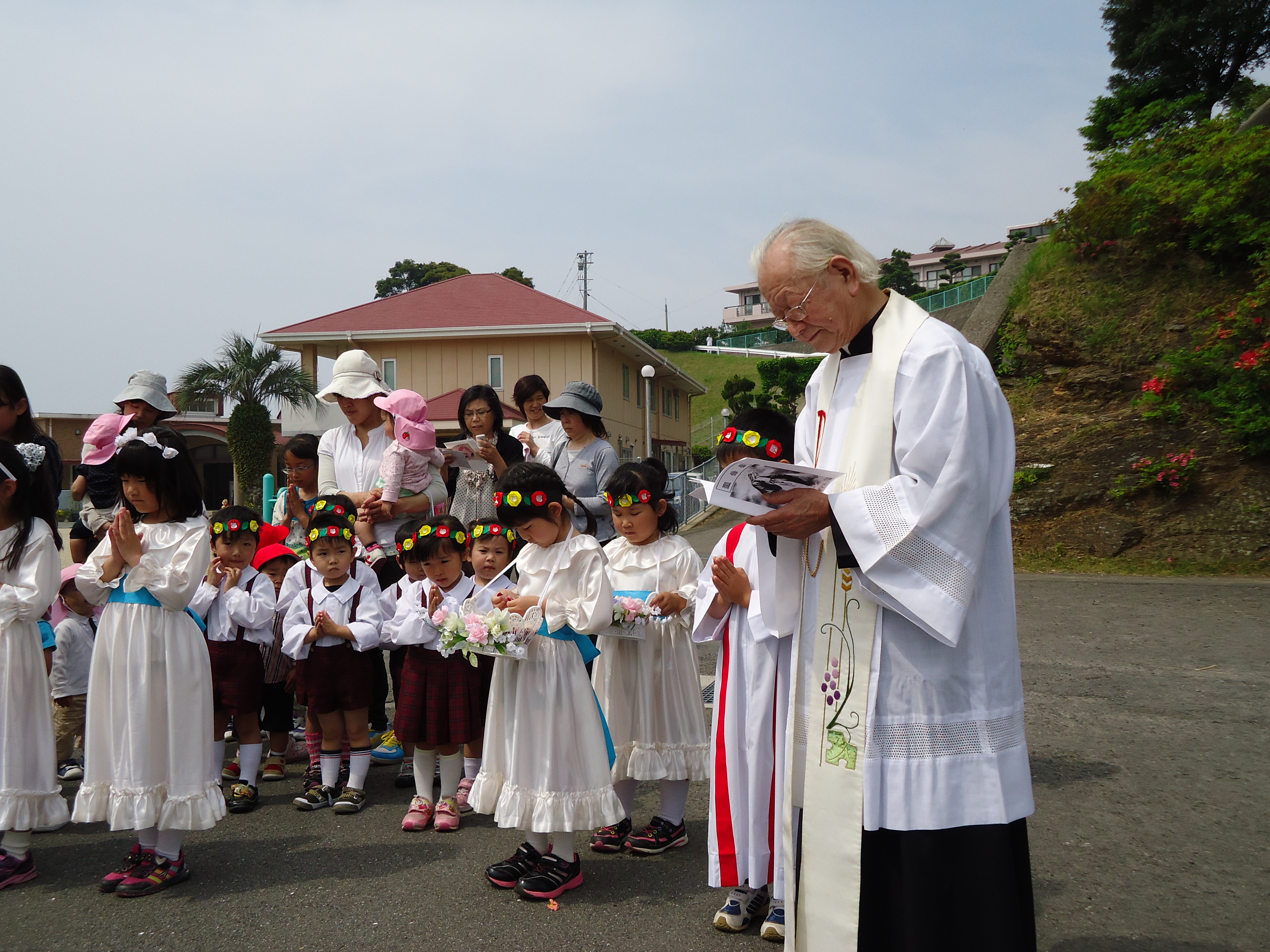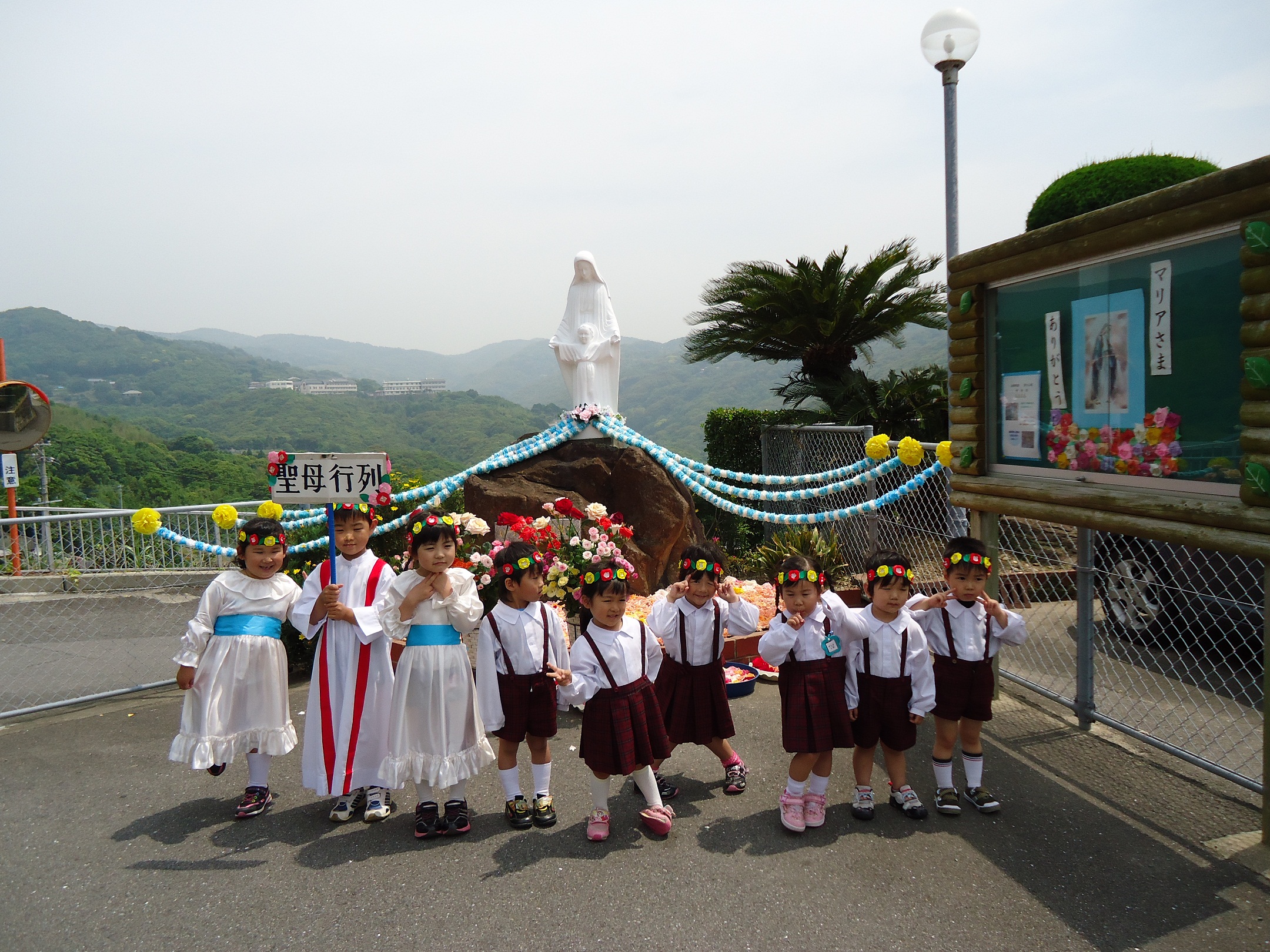 お知らせ 聖母祭 2013年6月1日 更新 5月25日、聖マルコ園のおじぃちゃん・おばぁちゃんたち一緒に聖母祭を行いました。 マリア様への感謝をおいのりに込めて、一生懸命行列を行いました 。 すみれぐみさんもがんばっておいのりしました )^o^( 世界中のみんなが幸せになりますように・・・・・(*^_^*) トップページに戻る
