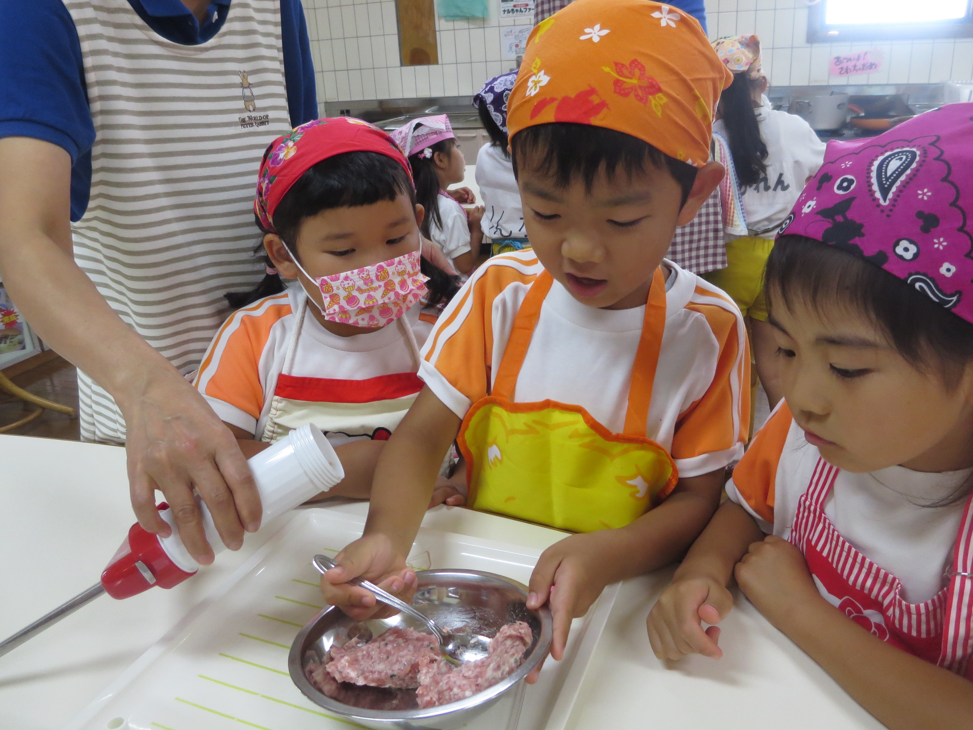みんなそれぞれに野菜も切り、詰めています。